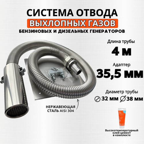 Длина 4м, вход на 35,5мм. Отвод выхлопных газов генератора