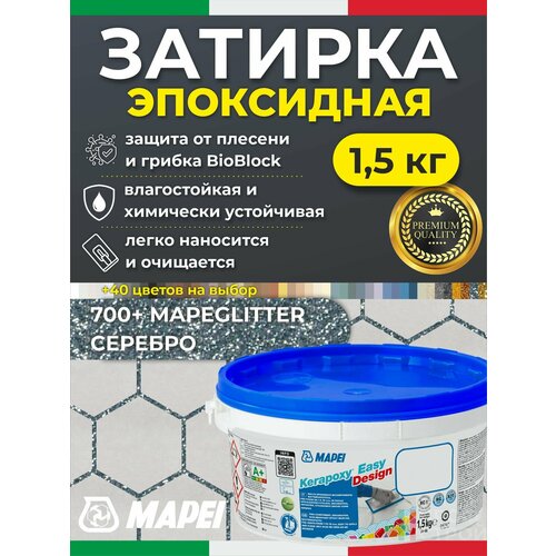 MAPEI Эпоксидная затирка с серебристыми блестками Kerapoxy Easy Design 700 Полупрозначный 1,5 кг + Mapeglitter цвет Серебро (Silver) 100 г / Двухкомпонентная клей-фуга для швов плитки от 1 мм