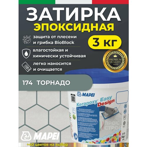 MAPEI Эпоксидная затирка для плитки Kerapoxy Easy Design 174 Торнадо, 3 кг - Двухкомпонентная высокостойкая клей-фуга для плиточных швов от 1 мм/ кислотостойкая/ противогрибковая/ водонепроницаемая