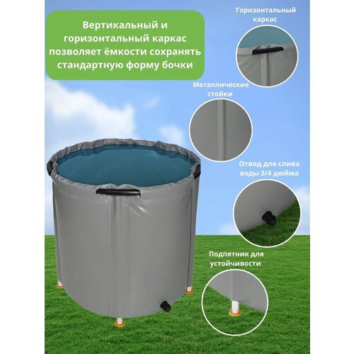 МобиБак - Складная Купель - Бассейн - с верхним каркасом для воды (встроенный штуцер 3/4" с пробкой) бак / складная емкость для воды)