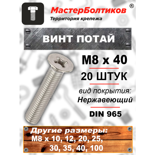 Винт потай M8х 40 нержавеющий А2 DIN 965 (20 штук)