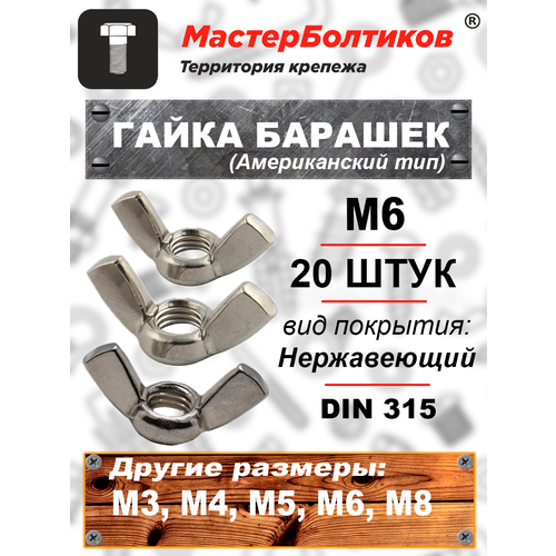Гайка барашек М 6 американский тип нержавеющая А2 DIN315 (20 штук)