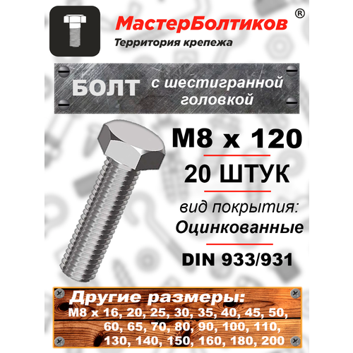 Болт 8х120 с шестигранной головкой DIN933/931 оцинкованный (20 штук)
