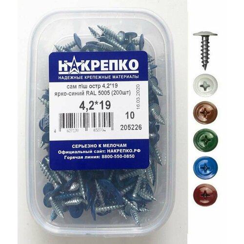 Саморез с прессшайбой острый 4,2*19 коричневый RAL 8017 (200шт EC) накрепко 205224 (арт. 508915)
