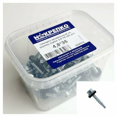 Саморез кровельный по дереву оцинкованный 4,8*35 (50 шт EC) накрепко 204602 (арт. 462183)