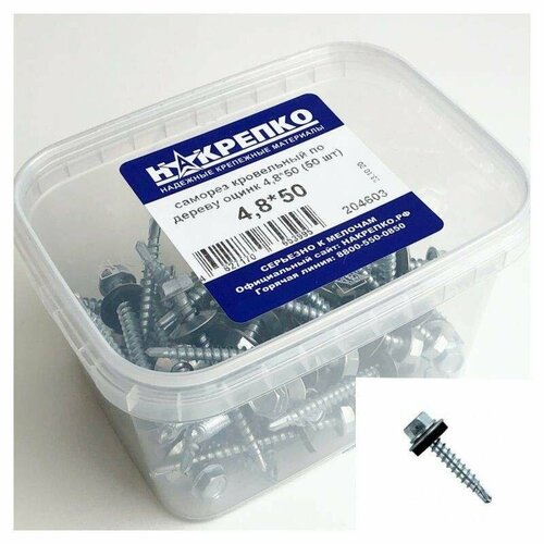 Саморез кровельный по дереву оцинкованный 4,8*50 (50 шт EC) накрепко 204603 (арт. 462184)