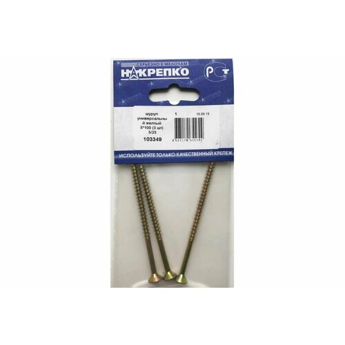 Шуруп универсальный Накрепко, 5х100 мм, из стали, желтый, оцинкованный, 3 шт в наборе