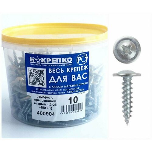 Саморез с прессшайбой острый 4,2*25 (450 шт EC) накрепко 400904 (арт. 451502)