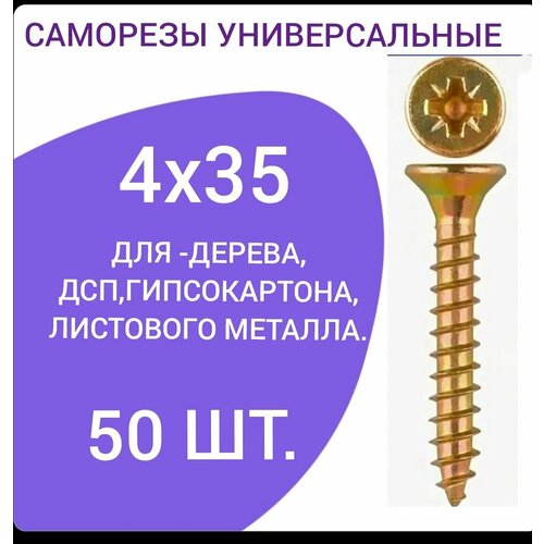 Саморез универсальный желтый цинк 4х35 (50 штук)