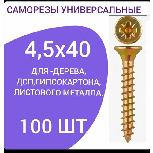 Саморез универсальный желтый цинк 4,5х40 (100 штук)