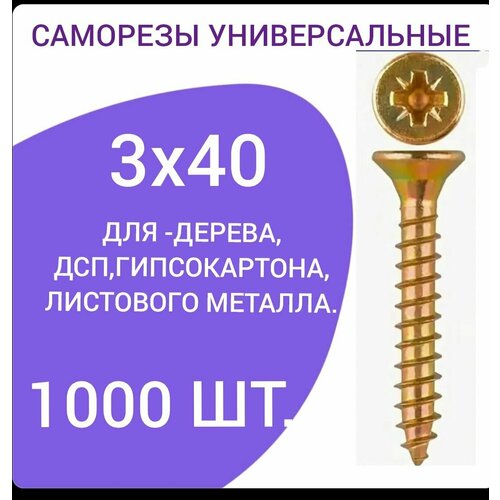 Саморез универсальный желтый цинк 3х40 (1000 штук)