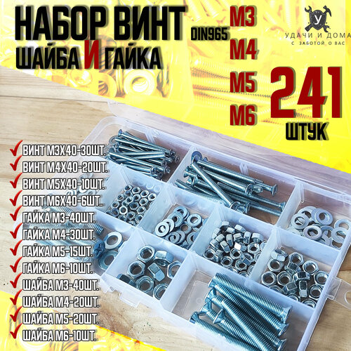 Комплект винт М3, М4, М5, М6, М8, гайка в органайзере