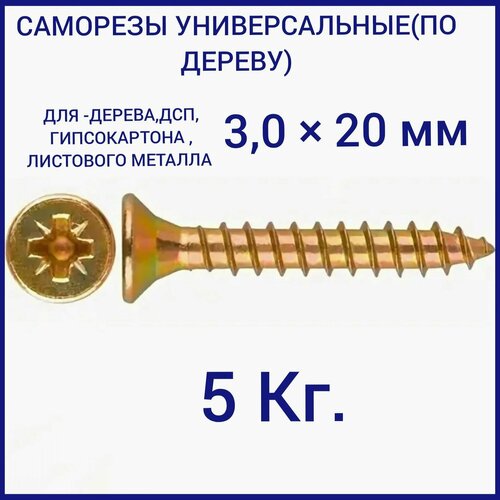 Саморез универсальный желтый цинк 3х20 вес 5кг