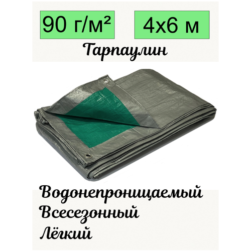 Брезент ROMITECH ЭКО 90 гр/м2 4х6 м, тарпаулин, с люверсами, всесезонный, водонепроницаемый, серо-зеленый