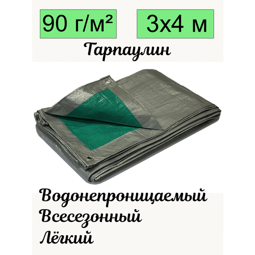 Тент брезент тарпаулин универсальный 3х4 метра плотность 90 гр/м2 с люверсами всесезонный водонепроницаемый строительный