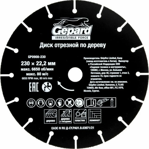 Круг отрезной 230x22.2 мм диск по дереву GEPARD (GP0908-230)