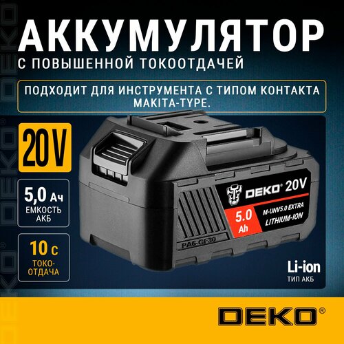 Аккумулятор DEKO M-UNV5.0 EXTRA, Li-ion, 20В, 5.0А*ч, с повышенной токоотдачей