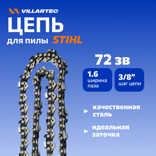 Цепь пильная для бензопилы 75S (72 звеньев, 3,8", 1,6 мм) VILLARTEC