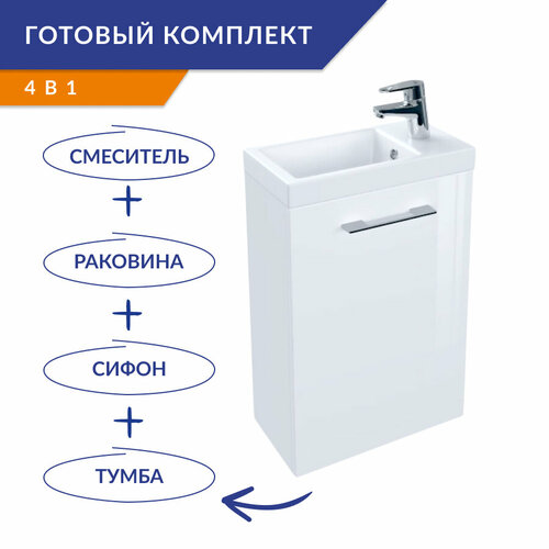Тумба Cersanit LARA 40 + раковина COMO 40 + смеситель CARI + сифон 64228