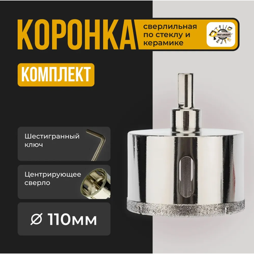 Коронка по стеклу и керамограниту с центр. сверлом 70мм , Коронка алмазная для стекла и керамики с алмазным напылением 110мм