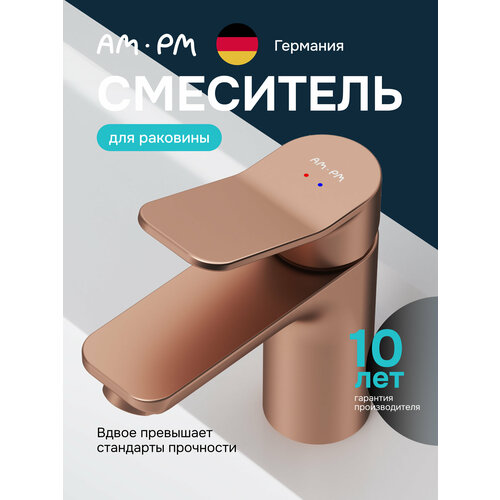 Смеситель для раковины в ванную AM.PM Brava, керамический картридж Soft Motion, розовое золото