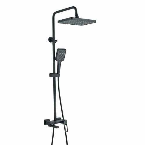 Смеситель для ванной длинный излив 35 см с душевым набором, черный сированным дивертором