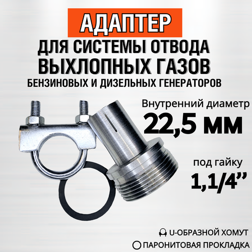 22мм - Адаптер с хомутом (под гайку 1,1/4") для системы отвода выхлопных газов генератора