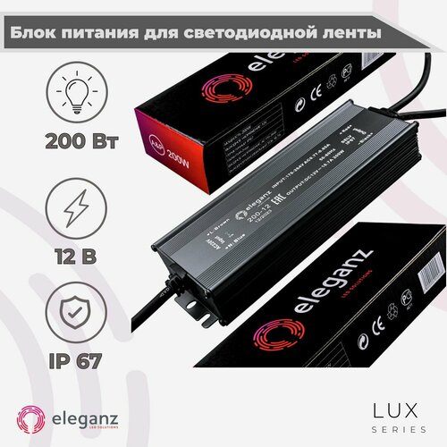Герметичный блок питания/трансформатор (металлический корпус) "Eleganz 200Вт" для светодиодной ленты 12В IP67