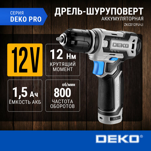 DEKO Дрель-шуруповерт DEKO DKCD12FU-Li, 12 В, 1.5 Ач, Li-lon, 28 Нм, 350/1350 об/мин