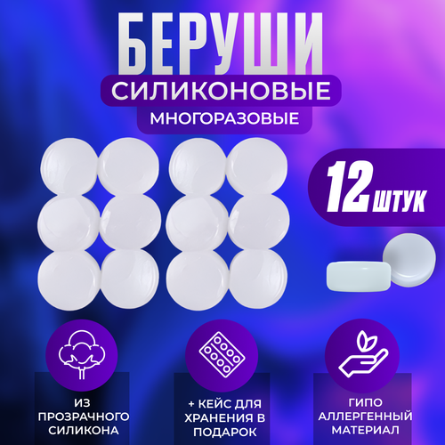 Беруши для сна многоразовые 12 штук, для плаванья, путешествий, силиконовые, противошумные затычки