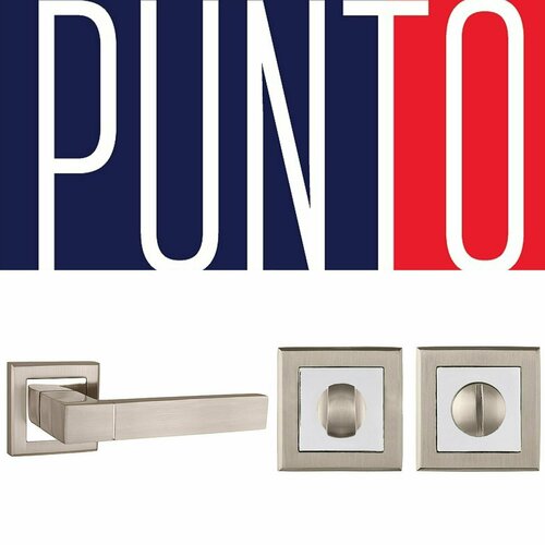 Комплект дверных межкомнатных ручек PUNTO с поворотной ручкой(завертка), матовый никель/хром
