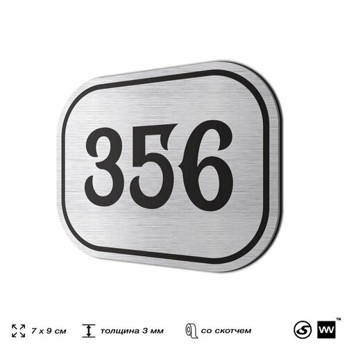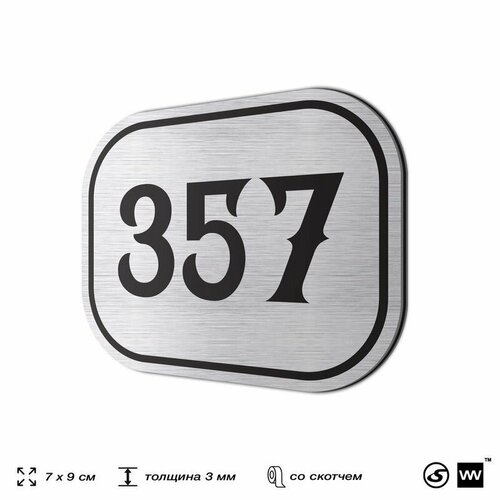 Номерок на дверь квартиры 357, для кабинета, офиса, шильдик 9 х 7 см, брашированная сталь, Айдентика Технолоджи