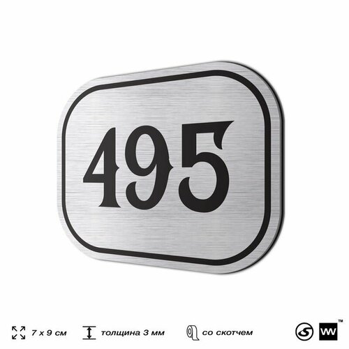 Номерок на дверь квартиры 495, для кабинета, офиса, шильдик 9 х 7 см, брашированная сталь, Айдентика Технолоджи