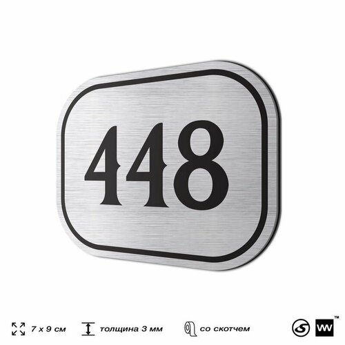 Номерок на дверь квартиры 448, для кабинета, офиса, шильдик 9 х 7 см, брашированная сталь, Айдентика Технолоджи