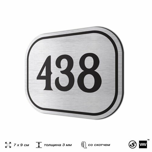Номерок на дверь квартиры 438, для кабинета, офиса, шильдик 9 х 7 см, брашированная сталь, Айдентика Технолоджи