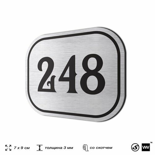 Номерок на дверь квартиры 248, для кабинета, офиса, шильдик 9 х 7 см, серебристый, Айдентика Технолоджи
