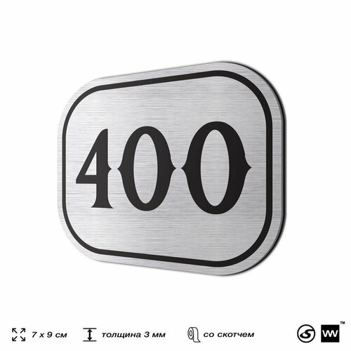 Номерок на дверь квартиры 400, для кабинета, офиса, шильдик 9 х 7 см, брашированная сталь, Айдентика Технолоджи