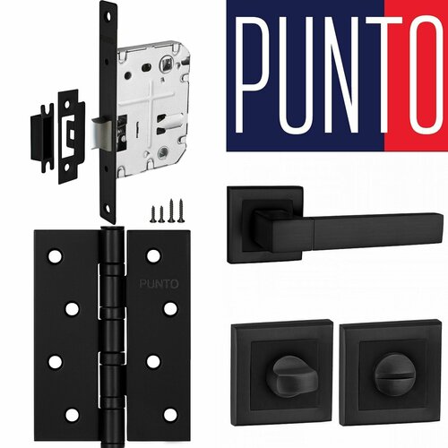 Комплект дверных межкомнатных ручек PUNTO с защелкой и универсальными врезными петлями, черный