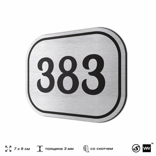 Номерок на дверь квартиры 383, для кабинета, офиса, шильдик 9 х 7 см, брашированная сталь, Айдентика Технолоджи