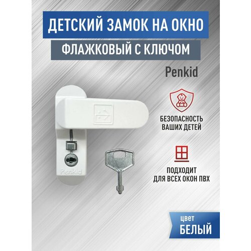 Блокиратор на окна с ключом, детский замок Penkid, цвет белый, 2шт