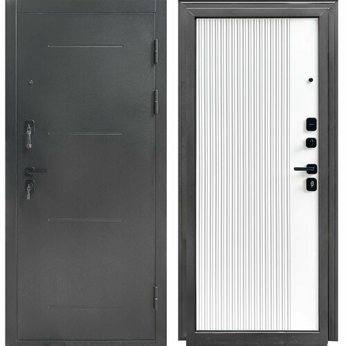 Цены на Дверь входная металлическая для дома с терморазрывом бульдорс TERMO 2050x960 Правая Букле черный - Бетон снежный белый, черный, серый в г. Санкт-Петербург