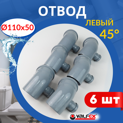 Отвод канализационный 110х50 (левый) 45 градусов (Valfex) 6шт