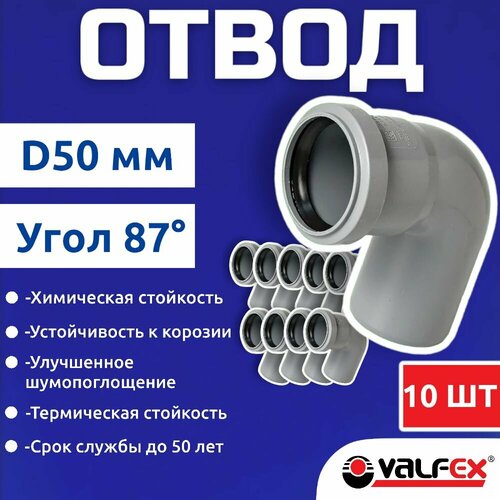 Отвод для канализационной трубы 50 мм 87 градусов, полипропиленовый(10 шт)