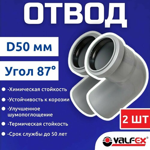 Отвод для канализационной трубы 50 мм 87 градусов, полипропиленовый(2 шт)