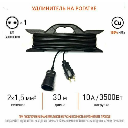Удлинитель сетевой 2500 Вт 3 метра, 10 розеток, 4 USB, 1 Type-C, с предохранителем, с единым выключателем