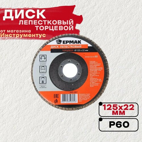Диск лепестковый торцевой 125*22 Р60 Ермак, 10 шт