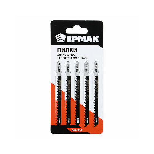 Ермак пилки для эл. лобзика (hcs eu 75х4мм.) t-144d (дер, быст. рез.), 5шт.