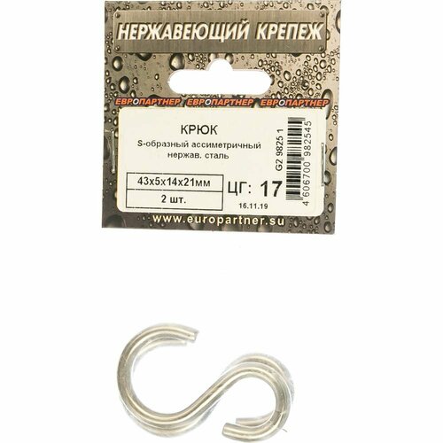 S-образный крюк европартнер асимметричный, 43х5х14х21, нержав. сталь, 2 шт. G2 9825 1