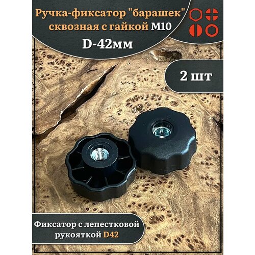 Ручка фиксатор барашек сквозная d 42 мм с гайкой М10, 2 шт.