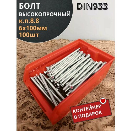 Болт 6х100 полная резьба DIN933 к. п.8.8 (100шт)в контейнере